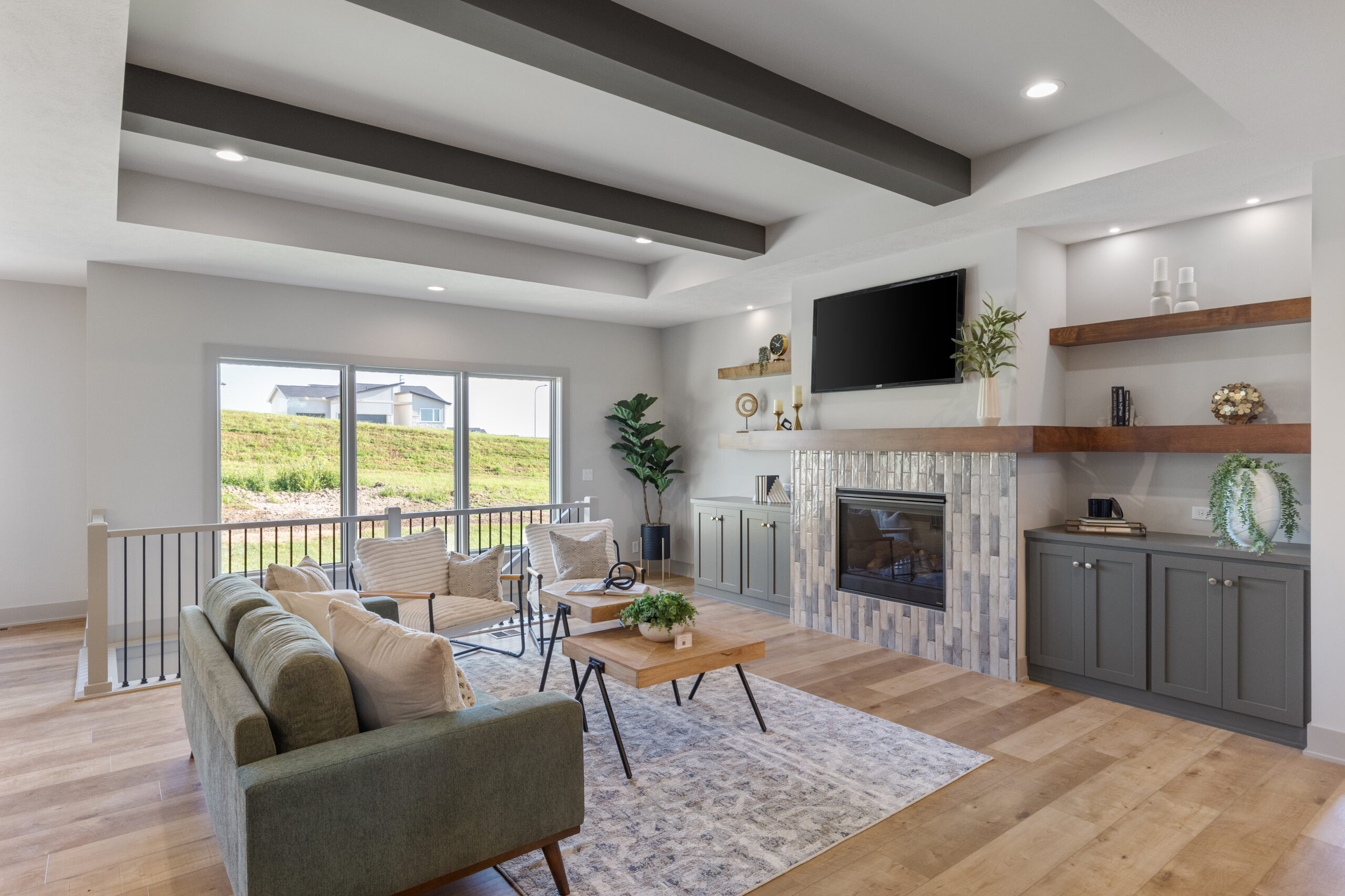 Downstairs leads to more space to entertain. An expansive family room with a seating area & wet bar, three more bedrooms, bath, & flex room.
