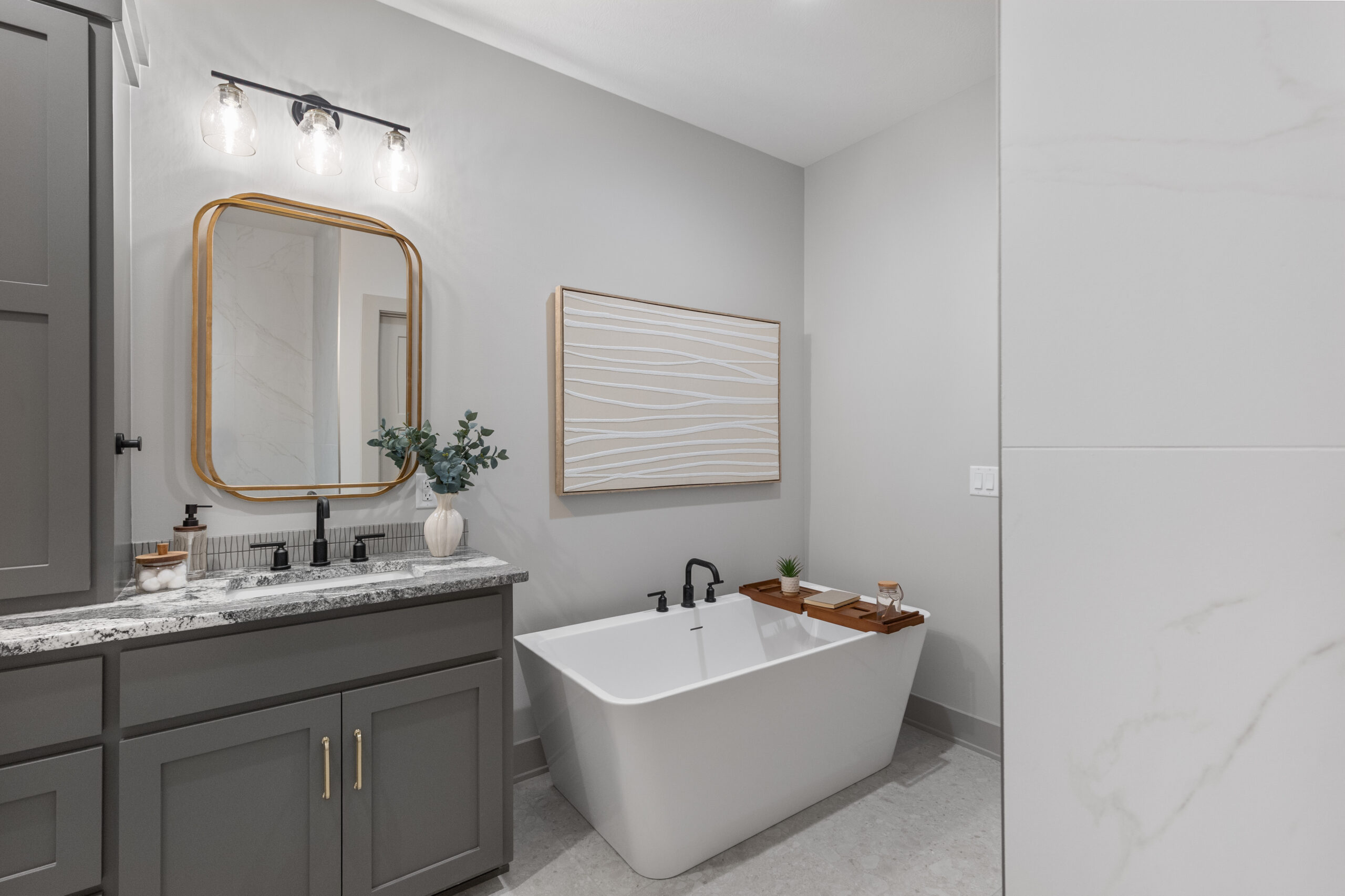 Access from the 3-car garage to the living room and kitchen as well as the fastest route to the secluded primary wing complete with a primary suite, bath, walk-in closet and laundry room which are all connected for convenience.